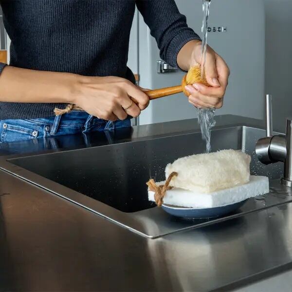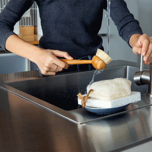 この食器用ブラシは、100%植物由来の原料のため河川や海を汚す心配がいりません。